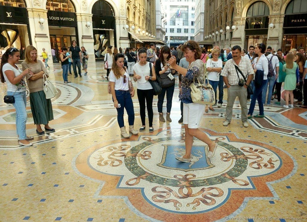 This is because it is considered good luck to put your heel in that spot and spin around. There are many opinions about how it is done correctly (only the right heel is correct; spin three times around; spin one time around; and so on) and there’s even the rumour that –gasp- this is not something any Milanese would ever do; it’s just a tourist thing.